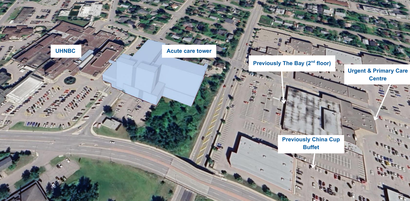 To make room for the new acute care tower at the University Hospital of Northern British Columbia (UHNBC), NIHU services will be moving to newly renovated spaces at Parkwood Mall. This relocation supports continued access to care close to the hospital, brings related teams together, and improves parking availability for patients, families, and staff.